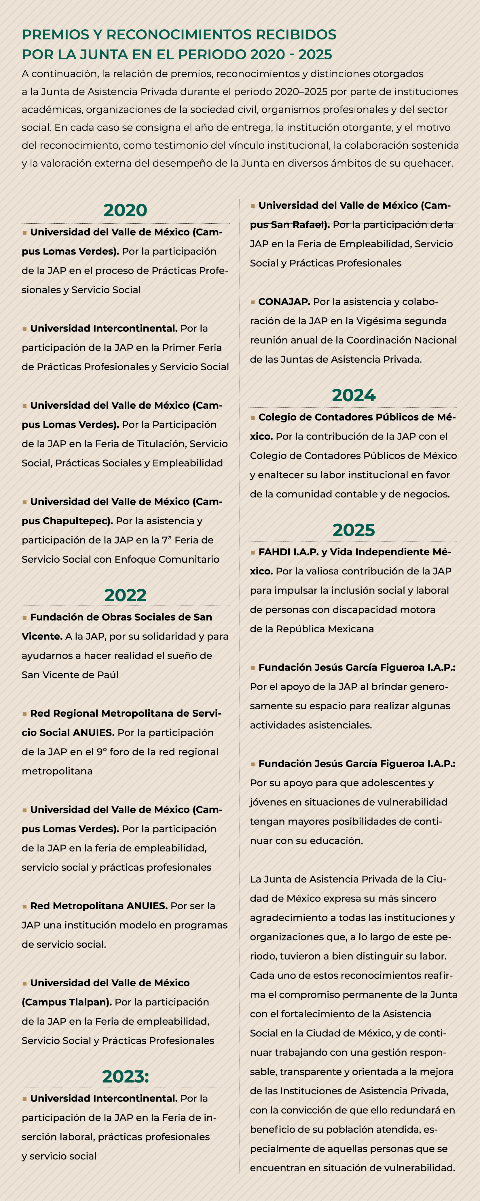 Premios y Reconocimientos recibidos por la Junta en el periodo 2020-2025
