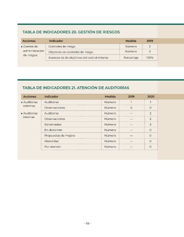 TABLA DE INDICADORES 20. GESTIÓN DE RIESGOS