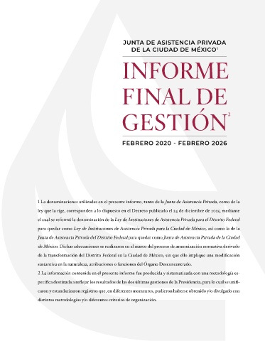 Page 5 - JUNTA DE ASISTENCIA PRIVADA DE LA CIUDAD DE MÉXICO1 INFORME FINAL DE GESTIÓN FEBRERO 2020 - FEBRERO 2026