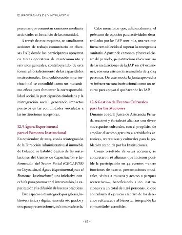 las instituciones receptoras. Durante 2025, la Junta de Asistencia Priva-