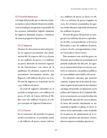 13.3 Gestión financiera en 3 millones de pesos, es decir, en 2%,
