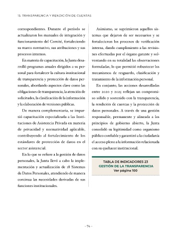 personales, la Junta llevó a cabo la imple- TABLA DE INDICADORES 23