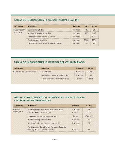 TABLA DE INDICADORES 14. CAPACITACIÓN A LAS IAP