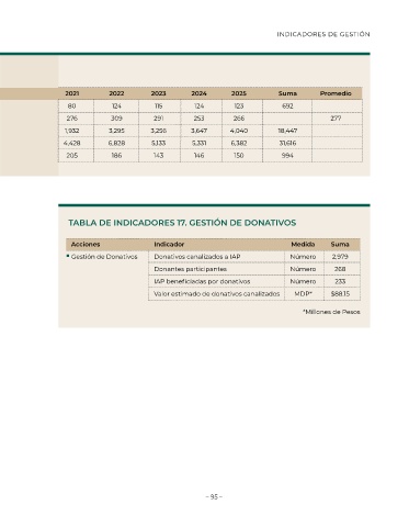 TABLA DE INDICADORES 17. GESTIÓN DE DONATIVOS