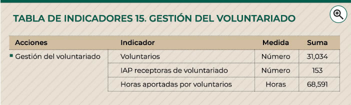 En todo el período reportado, participaron 31,034 voluntarios, aportando 68,591 horas de trabajo en beneficio de 153 instituciones.