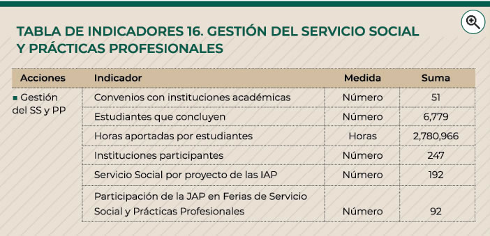 La ampliación de alianzas con instituciones educativas y la implementación de mecanismos de vinculación, entre ellos, mesas de trabajo para reunir a estudiantes con representantes de las IAP, la participación de la Junta en 92 ferias de servicio social y prácticas profesionales, así como el impulso al Premio al Servicio Social y Cuidadores, permitieron consolidar un modelo más estructurado y sostenible.