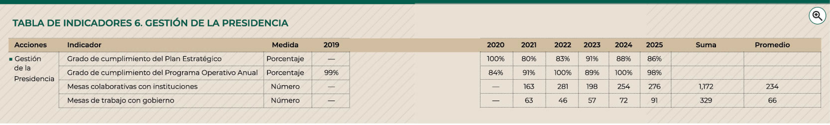 A continuación, se exponen las acciones realizadas por la presidencia durante el período 2020-2025: